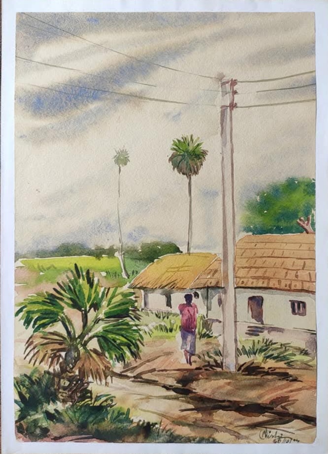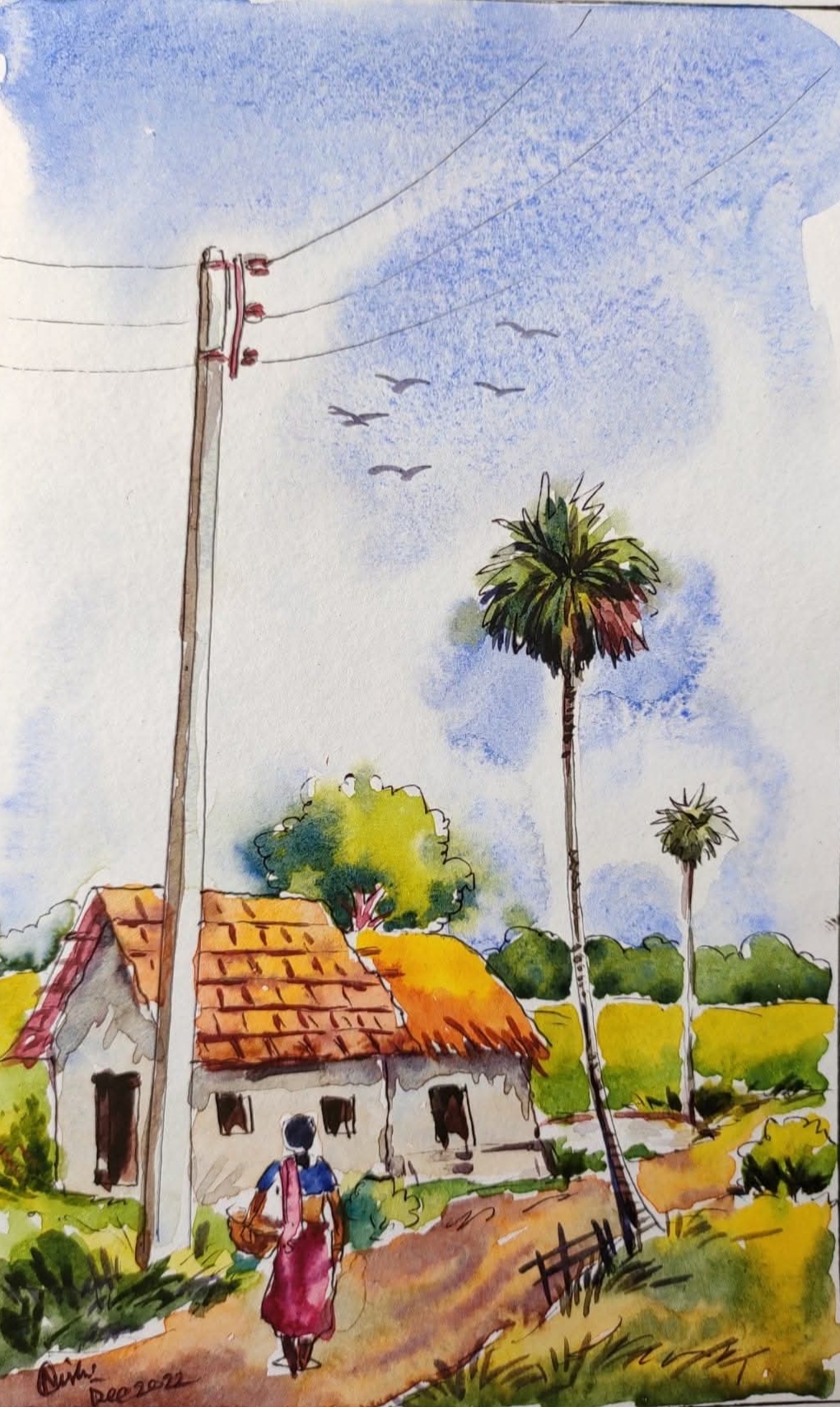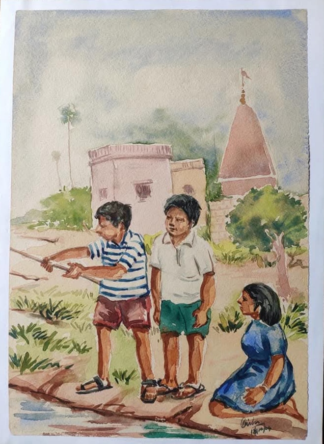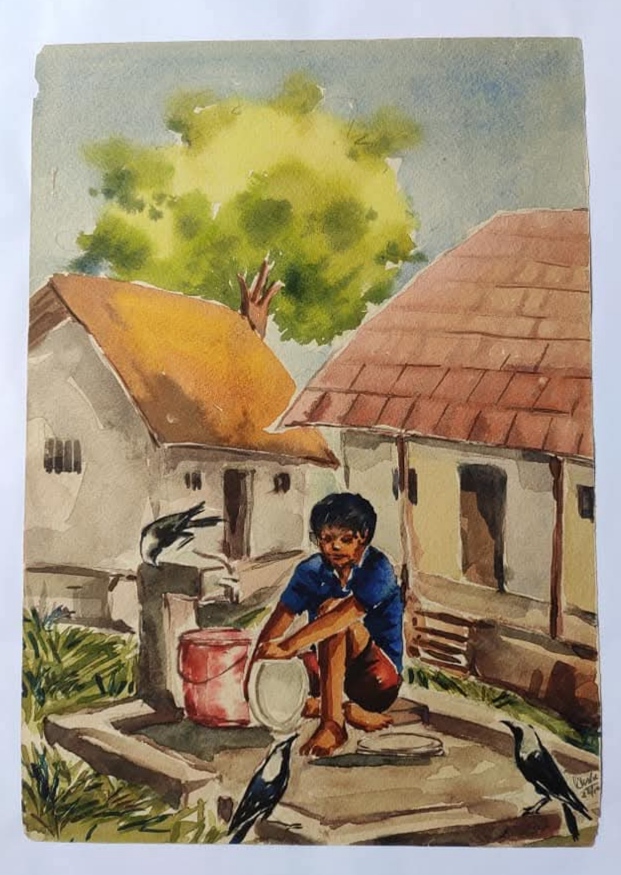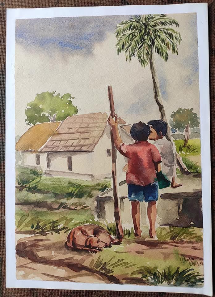 Here you can see some of my works - watercolor, oil paint, acrylic paint, ballpoint pen sketch, gel pen sketch, acrylic colour line drawing with brush, sketch, one stroke sketch, and some copy work done in charcoal and mostly my creative work done from the heart.