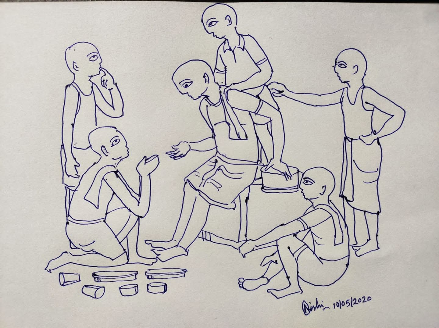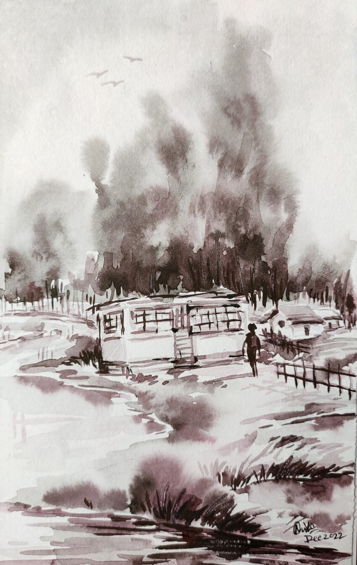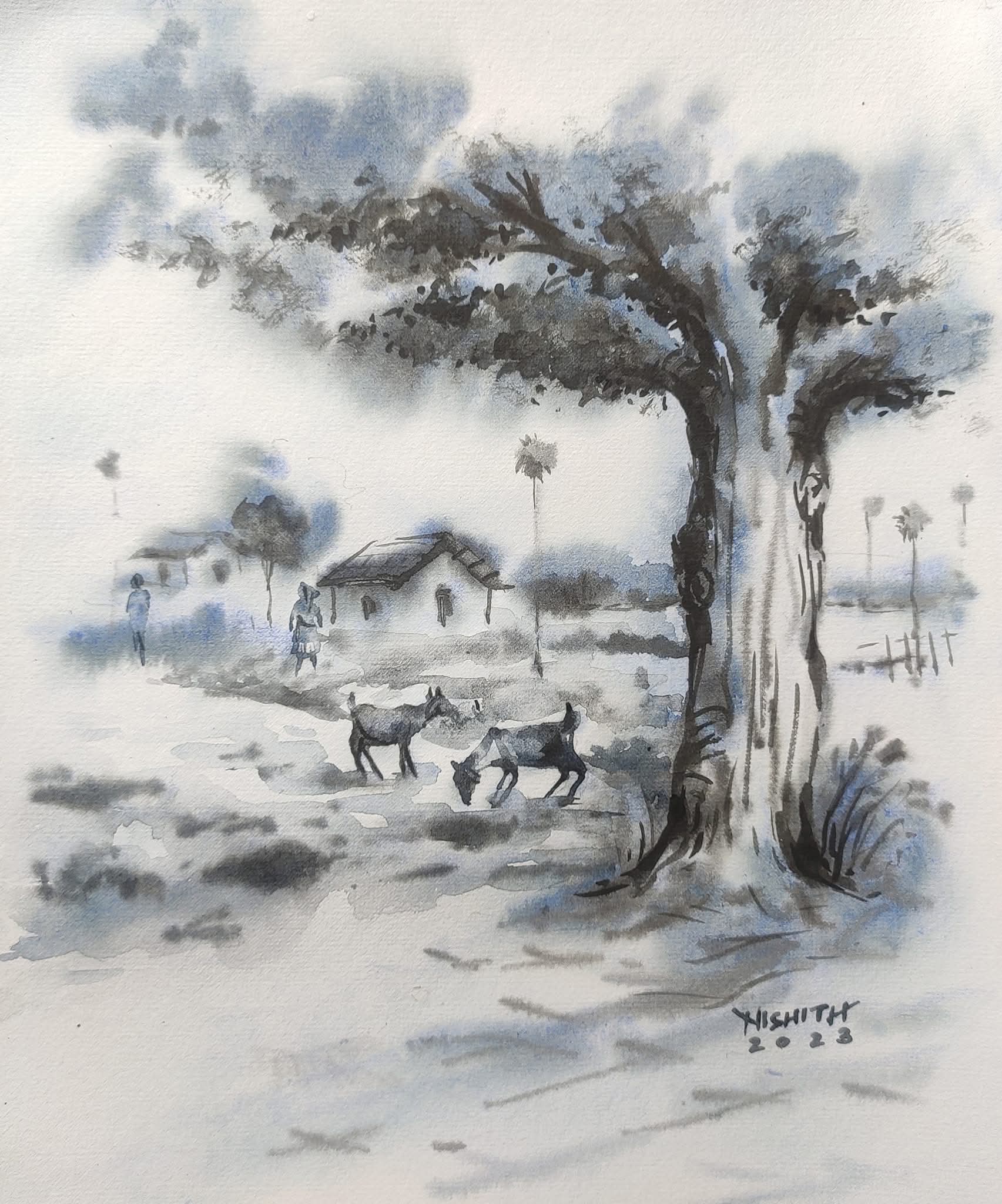 Here you can see some of my works - watercolor, oil paint, acrylic paint, ballpoint pen sketch, gel pen sketch, acrylic colour line drawing with brush, sketch, one stroke sketch, and some copy work done in charcoal and mostly my creative work done from the heart.